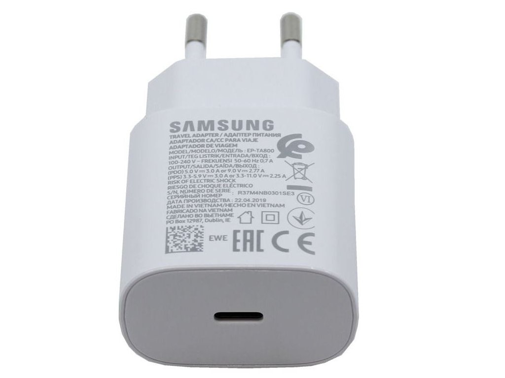 EP-TA800EBE Samsung USB-C 25W Cestovní nabíječka Black (OOB Bulk)