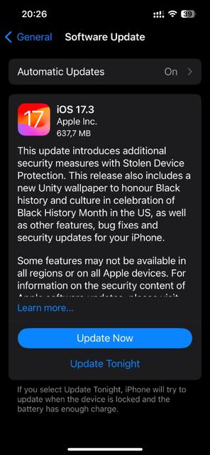 Po měsíci a půl testování systému iOS 17.3 vydala společnost Apple stabilní verzi firmwaru.