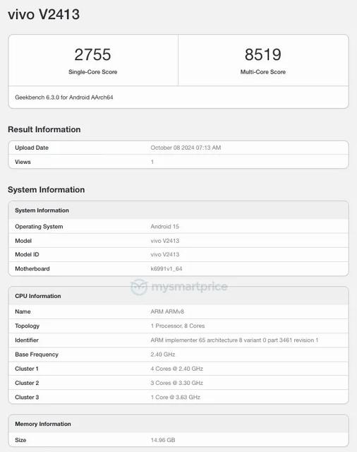 Společnost Vivo oznámila, že 14. října uvede na trh novou řadu chytrých telefonů X200, která zahrnuje modely X200, X200 Pro a X200 Pro Mini. V předvečer uvedení na trh byl globální model X200 Pro spatřen v databázích SGS Fimko a Geekbench pod číslem V2413.
