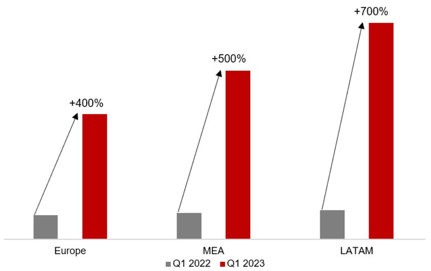 Společnost Honor dokázala v prvním čtvrtletí roku 2023 vykázat explozivní růst. V některých zemích se prodej chytrých telefonů zvýšil osminásobně.