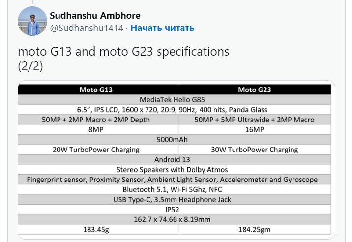 Na internetu se stále objevují obrázky a podrobnosti o nových smartphonech společnosti Motorola. Tentokrát zasvěcený @Sudhanshu1414 odtajnil Moto G13.