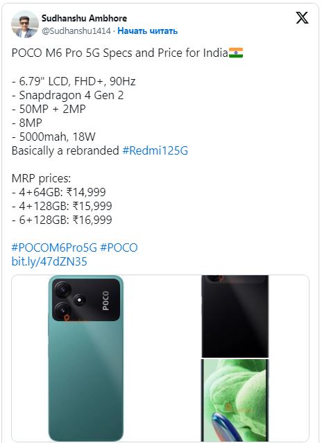 Pro ty, kteří nejsou v obraze, POCO M6 Pro 5G bude přejmenovanou verzí smartphonu Redmi Note 12R. Přístroj bude vybaven FHD+ IPS displejem s obnovovací frekvencí 90 Hz, procesorem Snapdragon 4 Gen 2, duálním fotoaparátem s rozlišením 50 MP a baterií s kapacitou 5000 mAh a 18W nabíjením.