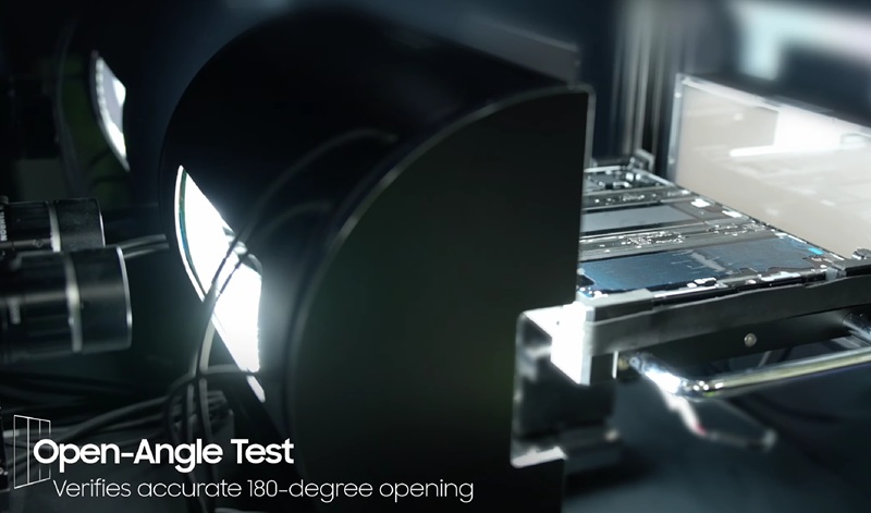 Po sestavení práce manipulátoři kontrolují spolehlivost kloubů skládáním a rozkládáním smartphonu. Mimochodem, Samsung tvrdí, že gadget vydrží 200 000 složení, což odpovídá skládání a rozkládání zařízení 100krát denně po dobu pěti let.