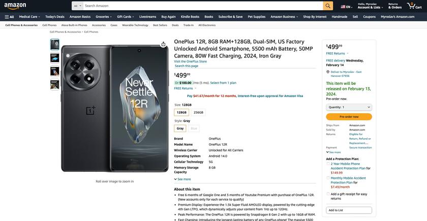 OnePlus 12R je na Amazonu k dispozici v šedé a modré barvě a také ve dvou paměťových verzích: