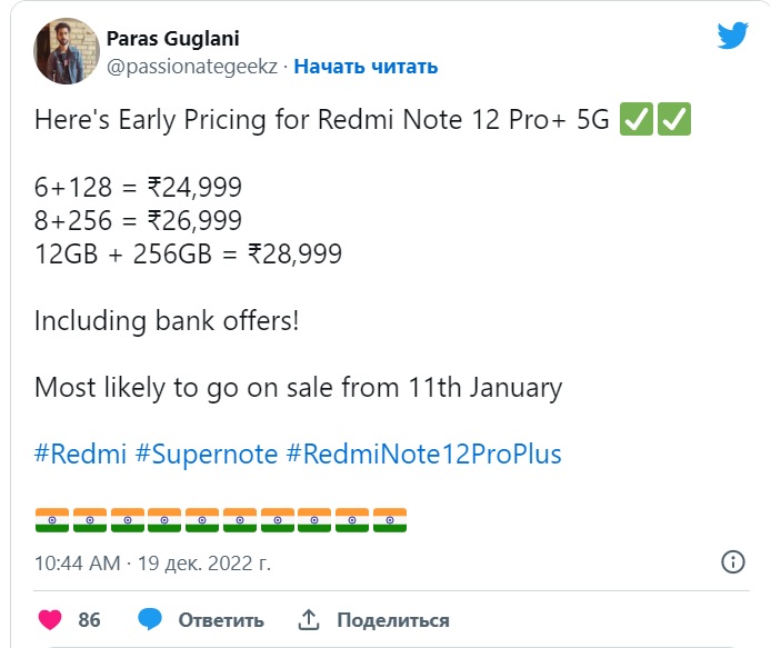 Redmi Note 12 Pro+ bude v Indii uveden na trh 5. ledna 2023. Očekává se, že společnost představí smartphony 12. generace v Evropě blíže k jaru