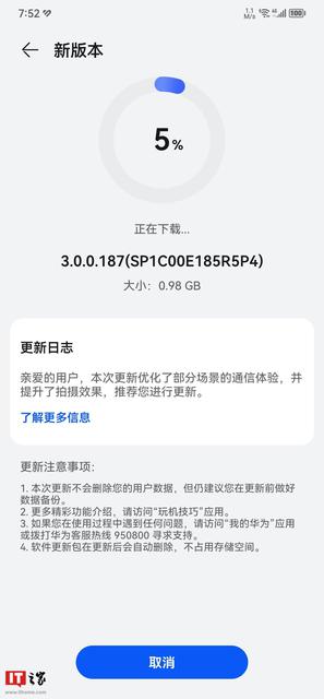 Pro Huawei Mate 50 Pro je k dispozici firmware HarmonyOS 3.0.0.187 (SP1C00E185R5P4) o velikosti 0,98 GB.